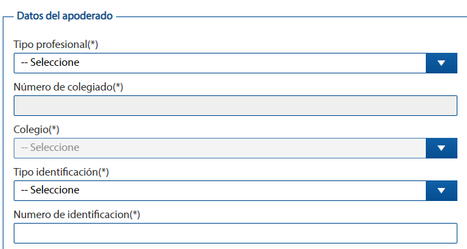 En tipo de profesional seleccionad Abogado/a. Tened a mano el número de colegiado de vuestro Abogado/a (si no lo tienes podéis buscarlo aquí ) e introducid el mismo. En Colegio buscad en el desplegable al que pertenece vuestro Abogado/a y seleccionadlo. En ese momento, se cargaran el resto de los datos automáticamente. Por si así no fuese es bueno que tengáis a mano el número de DNI de vuestro abogado/a.